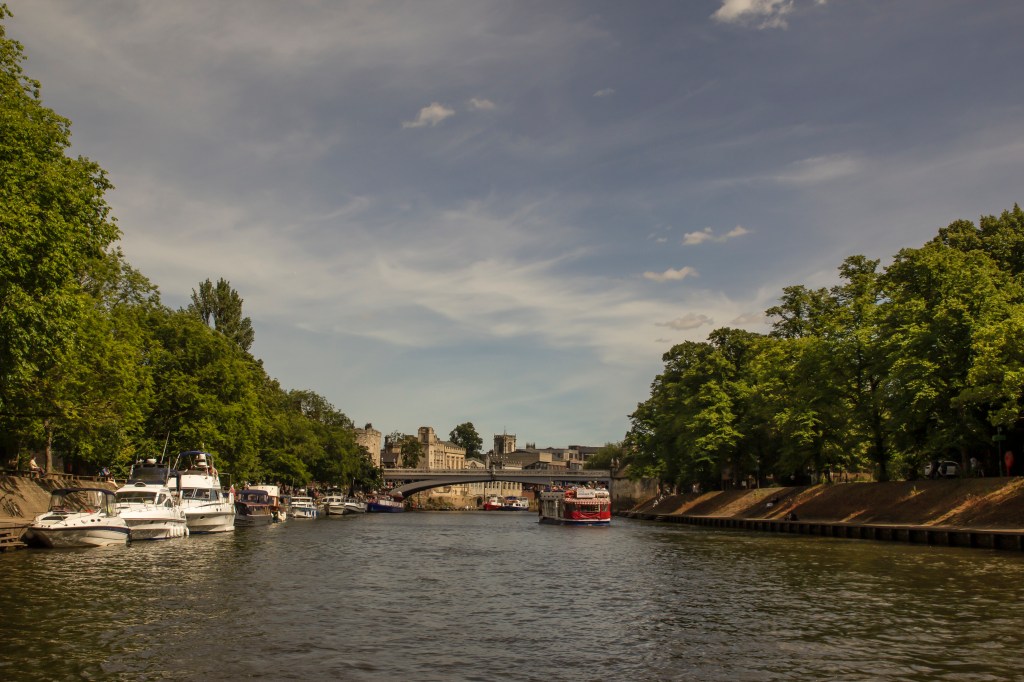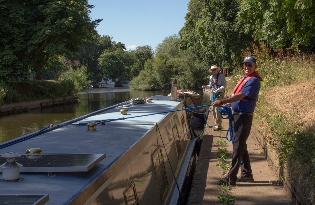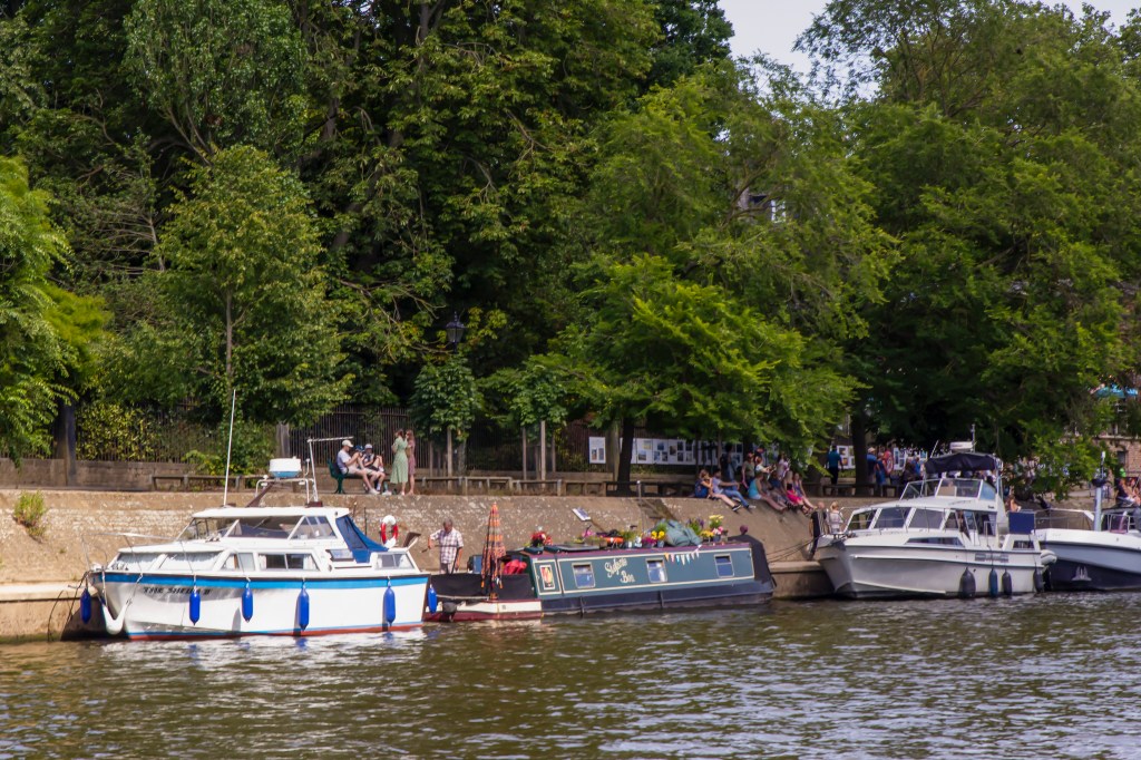 As we passed under Lendal Bridge and came close to the moorings, they looked pretty full. But another boat, Stephanie Boo, hailed us and invited us to raft up alongside them, as they were staying there for a few nights. We gratefully accepted his offer, and not long after, another boat, Ocelot, which had moored near us at Selby and at Naburn, appeared. Ian asked the owner if they’d like to tie up alongside us, so Derwent Lass was sandwiched between two other boats, which felt pretty secure.