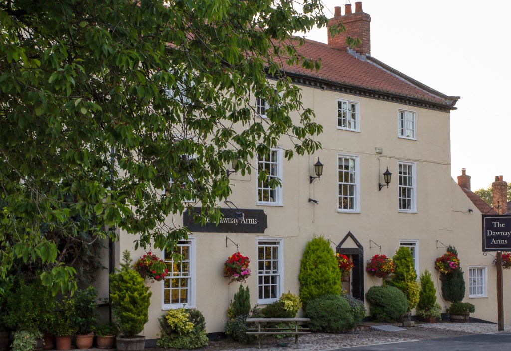 I noticed in the Nicholson’s Guide that just before Linton Locks there was a landing stage at Newton-on-Ouse, for the Dawnay Arms. We fancied a drink after our long day, tied up and climbed up the garden to the lovely old pub. The landlady said if we had a meal as well as a drink, we were welcome to stay overnight on their jetty. So that was dinner sorted, and our overnight mooring too, in the most peaceful spot imaginable.