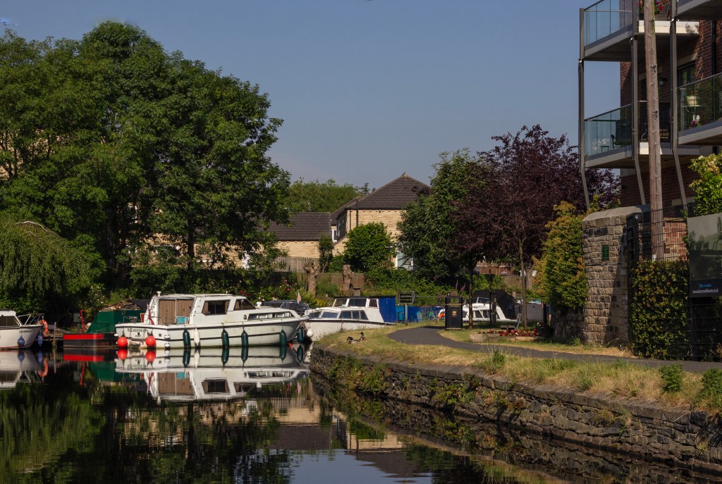 At Priestholme, the canal crosses the River Aire over a small aqueduct and then follows the river all the way to Leeds.