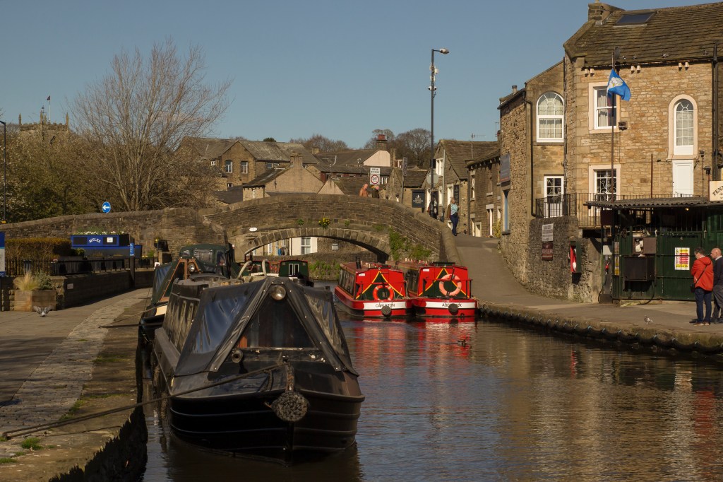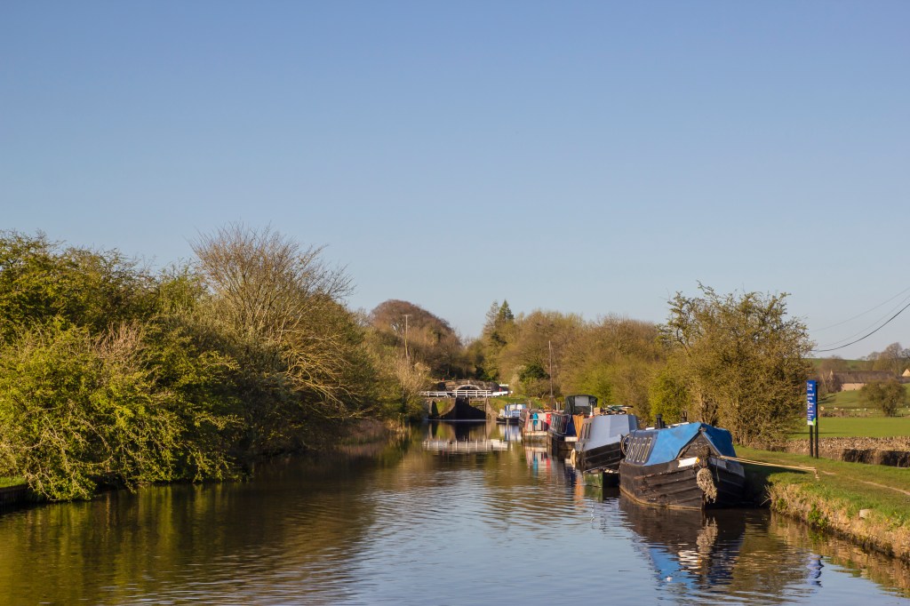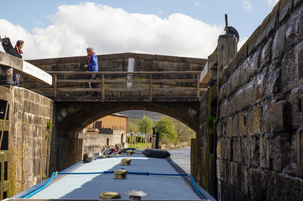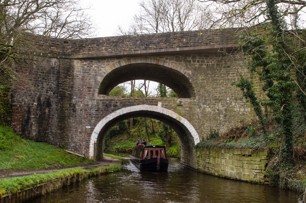 Unique on the waterways, the double-arched bridge at East Marton is listed by Historic England. The lower arch is the original packhorse bridge, thought to have been built around 1790. The upper arch was added to carry motorised traffic along the A59.