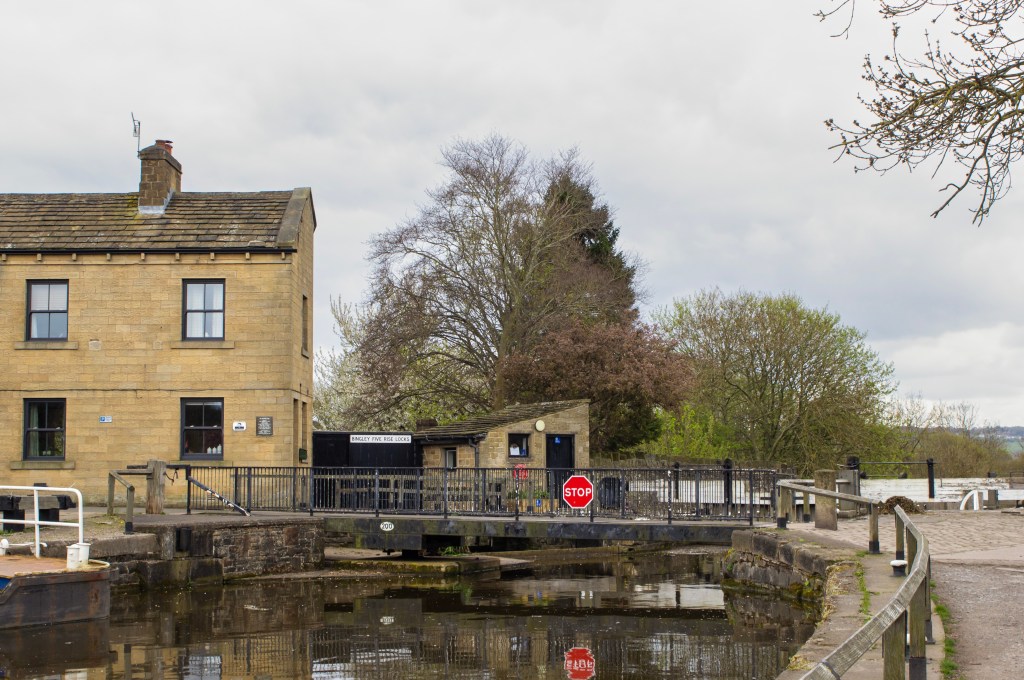 Beyond Holme Bridge Lock, two miles east of Gargrave, the canal follows the contour as far as Bingley Five Rise Locks, 11 miles away.
