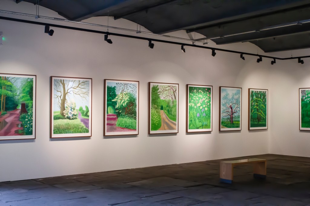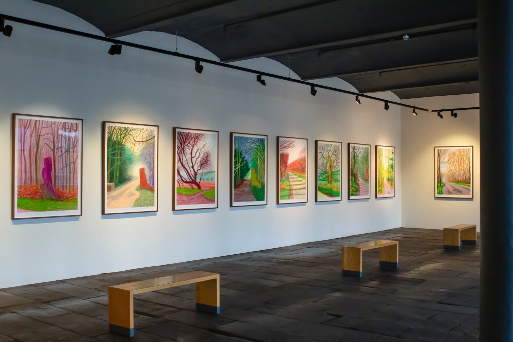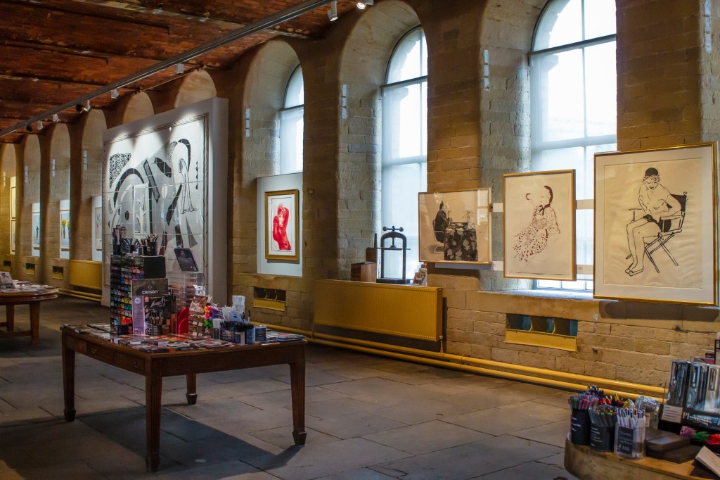 Textile production ended in 1986 and at this time, the mill was in a delapidated state. The following year, it was bought by Jonathan Silver, a local entrepreneur, who restored it and converted it inte retail units, a restaurant, and most importantly, a gallery devoted to David Hockney’s work. They were great friends and one of the exhibits is a card made by Hockney for Jonathan Silver when he was dying from cancer in 1997.